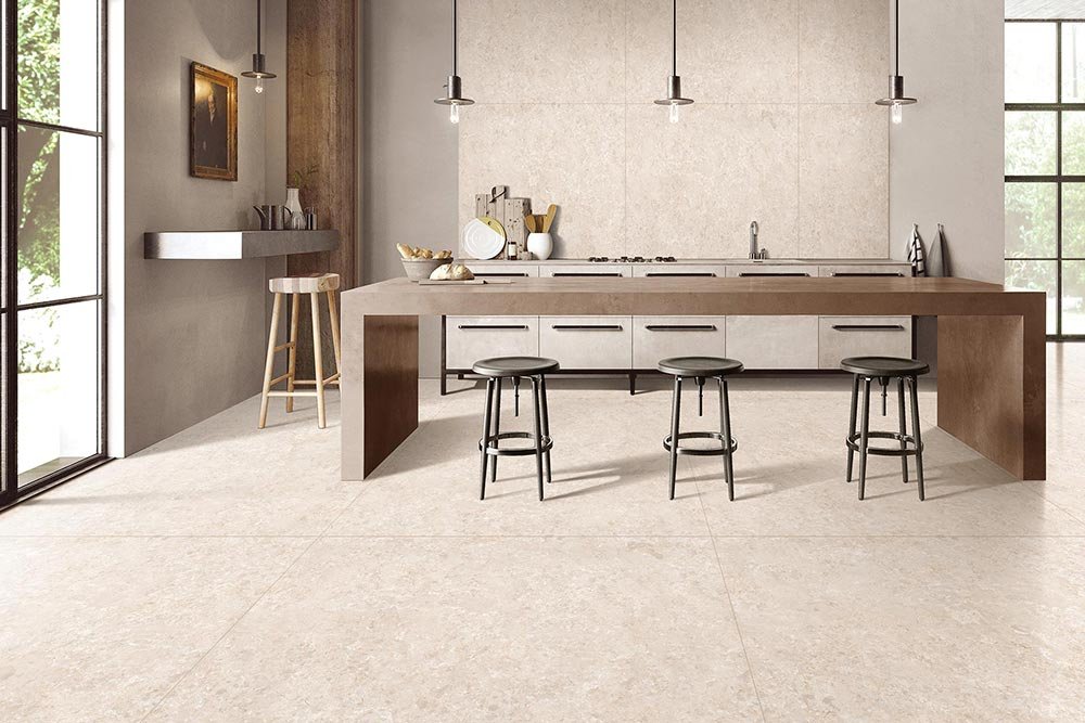 Bristol Beige Infinite – N is a premium glazed vitrified floor tile designed to replicate the timeless elegance of natural marble. The large 1200 × 1800 mm slab size creates a seamless and luxurious floor appearance with minimal grout lines, making it ideal for modern residential and commercial interiors.